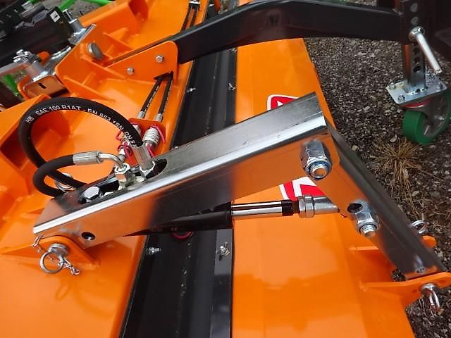 2,3 mètres - avec vidange hydraulique - avec 3 roues de support - avec attelage trois points et fixation rapide Euro - avec balai latéral - diamètre du balai latéral environ 650 mm - Prix : 4 800 € TTC