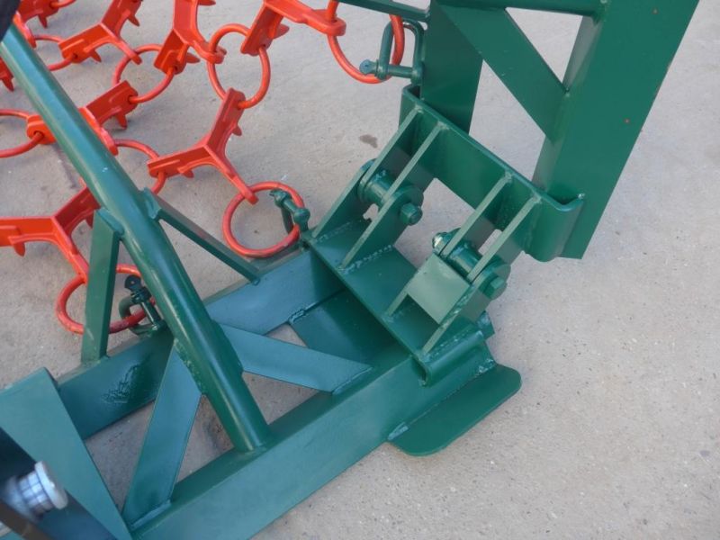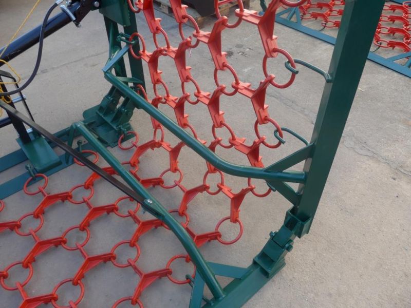 Nos herses de prairie sont conçues pour l'entretien des prairies, pâturages et champs après l'hiver. Elles sont également utilisées pour l'entretien et le travail des sols labourés. Elles sont également indispensables pour niveler les taupinières dans les prairies. La herse de prairie est composée d'un châssis simple et d'un grillage. Le grillage est composé d'éléments en fonte reliés entre eux et au châssis par des anneaux en acier. Les herses de prairie sont reliées par des charnières spéciales qui assurent la stabilité pendant l'utilisation et le transport. Le grillage de la herse de prairie fonctionne avec des éléments réversibles offrant deux options :