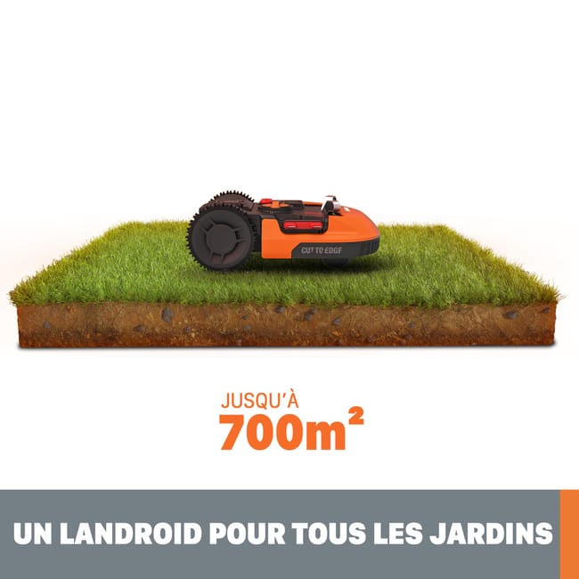Performante, la tondeuse robot WORX LANDROID WR142E vous permet de tondre votre pelouse sans effort sur une surface maximale de 700 m² et garantit une tonte parfaite, même sur les pentes allant jusqu'à 35° et sous la pluie. Pratique, LANDROID tond pour vous en toute autonomie, rapidement et même dans les passages les plus difficiles. Dotée de la technologie AIA, elle assure une tonte intelligente sans perte de temps. Intuitive et connectée, son installation est facile, sans besoin de fil de guidage dans les passages étroits. Précise, grâce à la technologie "Cut to Edge", elle coupe l'herbe jusqu'au rebord de votre jardin, évitant ainsi les retouches fastidieuses avec un coupe-bordures.Toujours à la pointe et connectée, elle bénéficie de mises à jour du logiciel automatiques sans intervention de votre part. Vous pouvez contrôler et programmer votre LANDROID à distance via l'application dédiée sur votre mobile ou tablette (Wi-Fi/Bluetooth). Évolutive, LANDROID améliore le cycle de tonte au quotidien en analysant les données, vous garantissant une tonte toujours plus précise. Configurable selon vos besoins, elle slalome autour des obstacles et évite les objets et le mobilier. La tondeuse robot peut être équipée d'une alarme, d'un tracker GPS/GSM et d'une fréquence longue distance (accessoires vendus séparément). Bénéficiez de 2 ans de garantie plus 1 année suppémentaire sur votre robot tondeuse sans fil WORX LANDROID en enregistrant votre produit sur notre site eu.worx dans les 30 jours suivant l'achat.