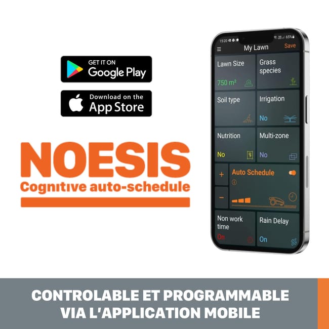 Technologie intuitive AIA pour optimiser le parcours de tonte. Nombreux accessoires possibles