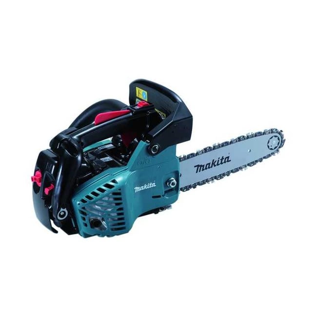 Makita - Scie d'élagage thermique 30,1cc 2 Temps 25cm - EA3110T25BLes avantages de cette scie d'élagage Makita EA3110T25B sont : - Tronçonneuse compacte et légère de 30 c.c.- Idéal pour tout type d'élagage. Sa puissance le rend parfait pour tailler les bois durs comme les olives.- Structure de deux corps, qui sépare le moteur des poignées réduisant les vibrations de l'utilisateur.- Système de ressort dans la poignée qui facilite le démarrage.- Pompe d'amorçage qui alimente le circuit d'essence facilitant ainsi le démarrage à froid.- Frein de chaîne SafetyMatic pour arrêter la chaîne immédiatement en cas d'accident.- La pompe à huile métallique haute résistance lubrifie la chaîne pendant la coupe.- Filtre à air facile d'accès. Système de ventilation qui bloque la saleté qui atteint le tunnel.- Moteur 2 tempsCaractéristiques techniques de la scie d'élagage Makita EA3110T25B : Cylindre 30.1 c.cPuissance 1 / 1,4 Kw / CvMoteur 2 TChaîne étape 3/8 "b.p"Longueur de coupe 25 cmRéservoir d'huile 0,18 LRéservoir de carburant 0,24 LPoids 3,2 kgTique anti-vibration grisPompe d'amorçage tick grisLubrification automatique de la chaîne griseGuide de Star Tick GreyScie d'élagage Makita EA3110T25B livrée avec : - Trousse d'outils- Guide des étoiles 3/8 "25cm- Protecteur d'épée 25cm- Chaîne 3/8 "91VG 25cmGarantie 1 an.