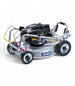 Conçue pour une durabilité accrue, la structure de la tondeuse est renforcée et fabriquée en acier verni à chaud, offrant une résistance supérieure aux chocs et aux conditions d'utilisation difficiles. Le cône de protection moteur, disponible en option, est particulièrement utile pour les jardins caillouteux ou accidentés, préservant ainsi les composants internes de la machine. Les essieux suspendus GRIN augmentent également la robustesse du mécanisme.