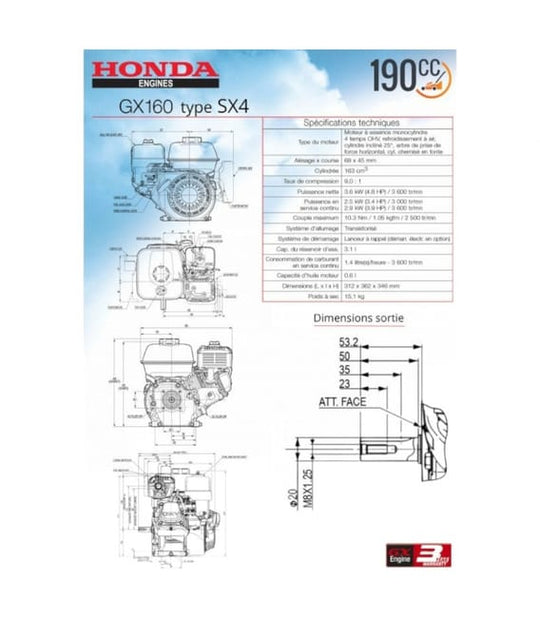 Vendeur : ATC HORDIS Moteur Honda GX160SX4 163 cc, Vilebrequin 20,0 mm, pour pompe à eau, souffleuse à neige et générateur Le moteur est livré sans huile.Les moteurs GX160 conviennent à un large éventail d'applications dont l'usage est intensif tels que des matériels utilisés dans la construction, des motoculteurs, des générateurs, des groupes de soudage, des pompes...Prix normal €437,90Prix normal €437,90