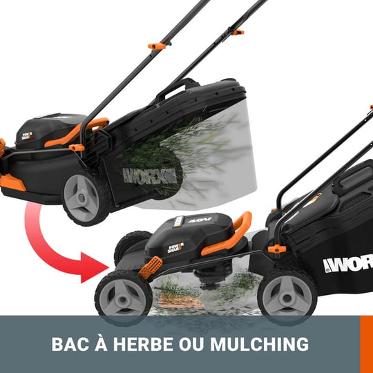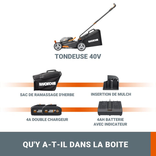 Tondeuse à gazon 2*20V WORX - WG743E (2 batteries 4Ah et chargeur double)