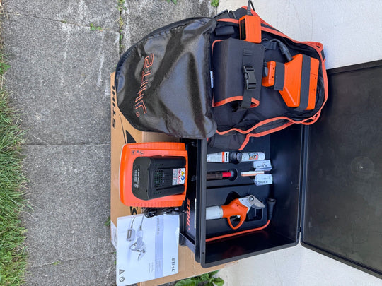 Sécateur d'élagage dorsal comme neuf Sécateur sans fil STIHL ASA 65 Avec batterie AP 200 et chargeur AL 300 neufs, avec mallette et accessoiresPrix normal €1.150,00Prix normal €1.150,00 -