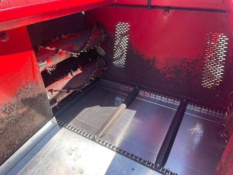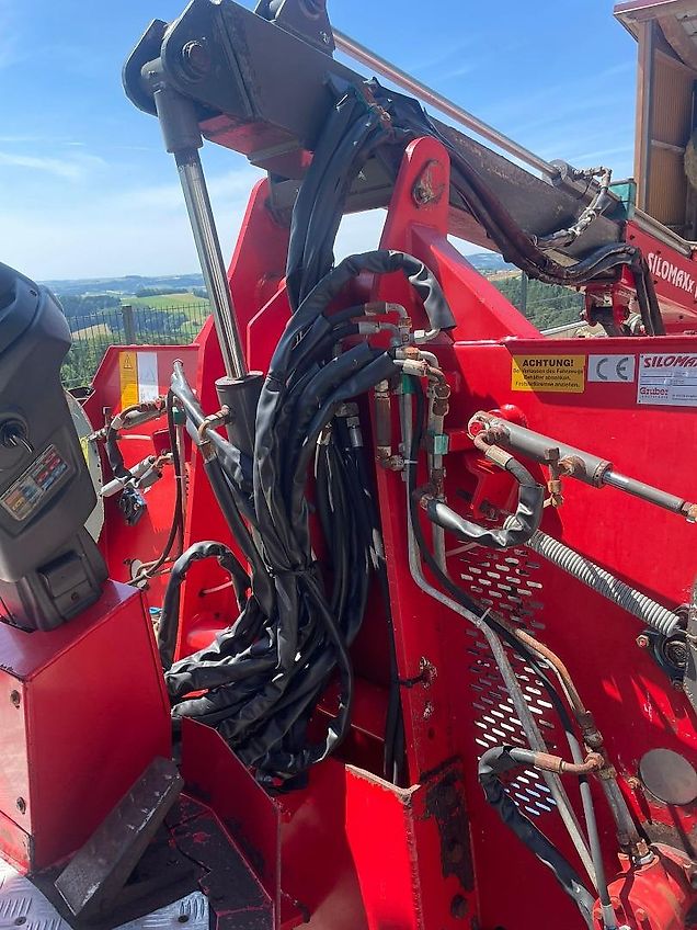 Gruber Silomaxx en très bon état, construit en 2007, environ 3 500 heures de fonctionnement, avec plusieurs options : revêtement en acier inoxydable, chaîne à rouleaux en acier inoxydable pour le fond mouvant, dents blindées, frein à main hydraulique, flèche précontrainte. Phares de travail avant et arrière, déchargement du fond mouvant des deux côtés par double rouleau, toit de protection, moteur Deutz de 45 ch, transmission hydrostatique.