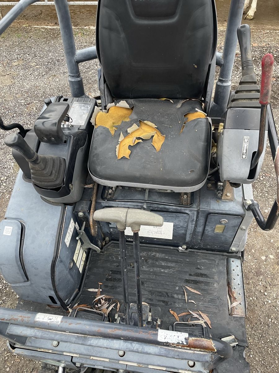 Je vends une mini-pelle Hitachi d'occasion. La pelle est immédiatement prête à l'emploi. Type : ZX17U-2 YLR, année de construction 2008, environ 3850 heures de service. Housse de siège défectueuse. Présente diverses traces d'utilisation (côté droit). Un entretien serait également nécessaire. Peut être effectué moyennant un supplément.