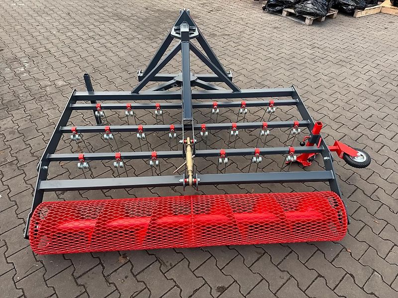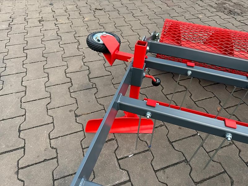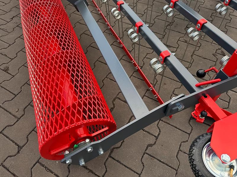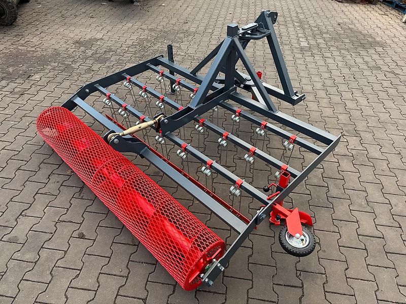 Le rouleau arrière de suivi tasse et rend le sol légèrement rugueux. La hauteur du rouleau est réglable à l'aide d'une manivelle.