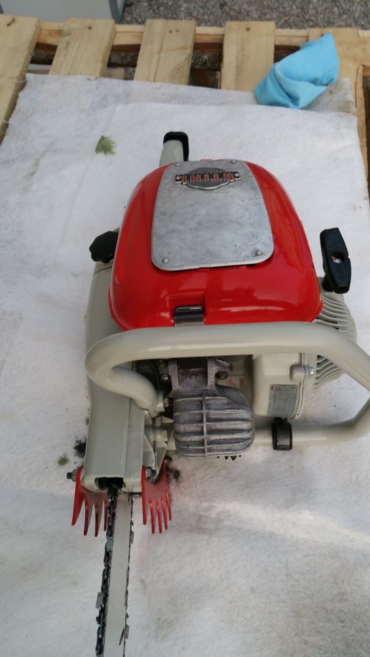 Comme illustré, elle est en parfait état et a été restaurée, révisée et entretenue avec le plus grand soin. Il est difficile de trouver une scie dans cet état sur le marché ouvert. Il s'agit d'une Contra S et donc d'une des Contras les plus rares.