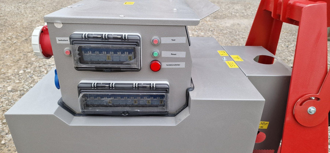 Combinaison de prises pour utilisation sur le terrain : 3 prises CH - 230 V 16 A, 1 prise CEE 400 V 16 A, 1 prise CEE 32 A, 1 prise CEE 63 A