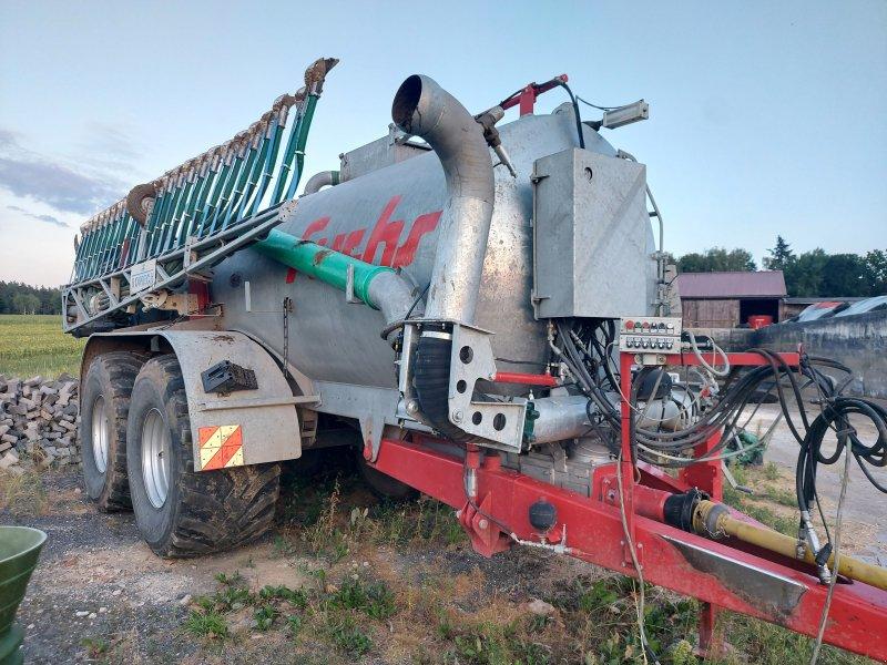 Fuchs PT 15000 Tandem, châssis tandem à 4 lames avec barre stabilisatrice, essieu directeur avec rappel hysdr., essieux BPW avec frein 410 x 180, attelage inférieur avec suspension hydr., pneus Trelleborg 750/60R3.50 avec encastrement pour tonneau, version 40 km/h avec garde-boue, attelage à boule K 80, raccord d'aspiration 8, raccord hydr. Bras d'aspiration R. Conduite d'aspiration divisée 200 mm, pompe à joues GL 65 F 140, arbre à cardan grand angle avec vis de cisaillement, dôme coulissant hydr., système à 2 chambres, commande électrique confort de toutes les fonctions, arrêt pneumatique en fin de course, coulisseau à lame, compteur de fûts.