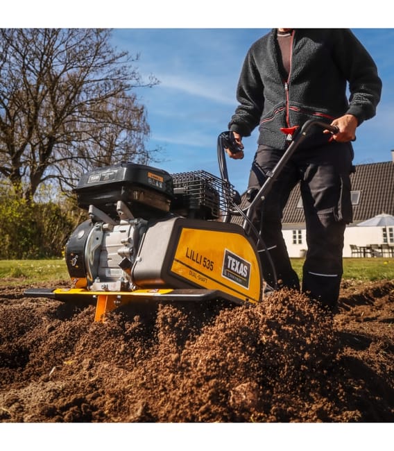 Profitez de la technologie danoise avec la motobineuse Texas Lilli 535 TG, une machine robuste conçue pour travailler le sol et faire face à de nombreuses heures de travail.