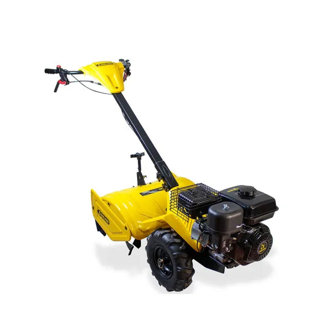 Motoculteur à fraises arrières 741RQG-V20 équipé d'un puissant moteur 4 temps de 196 cm3 OHV, d'une transmission à deux vitesses (une avant et une arrière) et de roues pneumatiques qui stabilisent et font progresser la machine avec un minimum d'effort. Il comprend également un rotavator arrière équipé de 4 fraises en acier et un déverrouillage manuel de la traction pour le déplacer aisément. Réglage facile de l'éperon, des ailes latérales et du guidon réglable. Caractéristiques techniques : Moteur : 4 temps Cylindrée : (cm³) 196 Carburant : Sans plomb 95 Puissance maximal : 4,1 kW Régime de rotation : 3 600 t/min Nombre de fraises : 4 Largeur de travail : 50 cm Profondeur de travail : 15/20 cm Capacité du réservoir á carburant SP95 : 3,6 l Capacité d’huile du carter 15W40 / 20W40 : 0,6 l Capacité d'huile de transmission 80W90 : 0,6 l Vitesse : 1 marche avant / 1 marche arrière Niveau de vibration du guidon gauche : 3,536 m / s Niveau de vibration du guidon droit : 3,383 m / s Niveau de pression acoustique : 83,7 dB (A) (k=3) Niveau de puissance acoustique mesuré LWA : 95,1 dB (A) (k=3) Niveau de puissance acoustique garanti : 100 dB (A) (k=3) Poids net : 73,5 kg Fraises non débrayables de la traction (moteur en marche) Garantie 2 ans assuré par nos techniciens. Livraison Gratuite