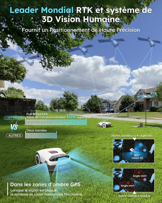 Robot Tondeuse sans Fil Périphérique - 900㎡, Full Band RTK+4 Yeux IA Vision Tondeuse Robot Gazon, Auto Cartographie, 20 Multi-Zone, Évitement d'obstacles, ANTHBOT Genie600