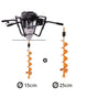 Les 2 guidons permettent de travailler à une ou deux personnes suivant la difficulté et les contraintes du terrain. 5 vrilles sont disponibles en accessoire pour percer des trous d'un diamètre de 10 à 35 cm.
