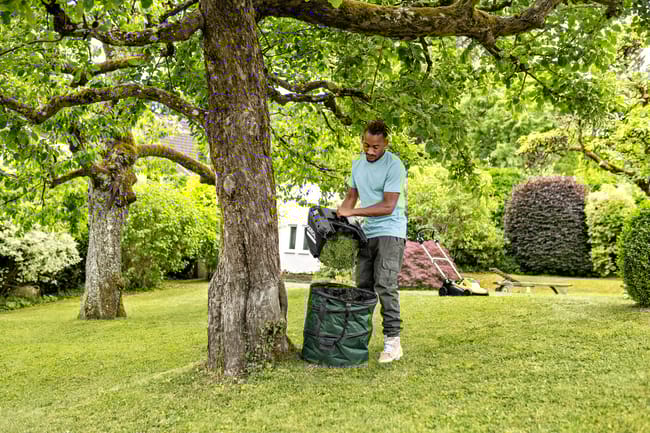 Le système de tonte 2 en 1 permet de répartir l'herbe coupée uniformément sur la pelouse comme engrais naturel pendant le paillage ou de la collecter dans le bac de ramassage d'une capacité de 45 litres – pour une session de tonte prolongée sans interruption.