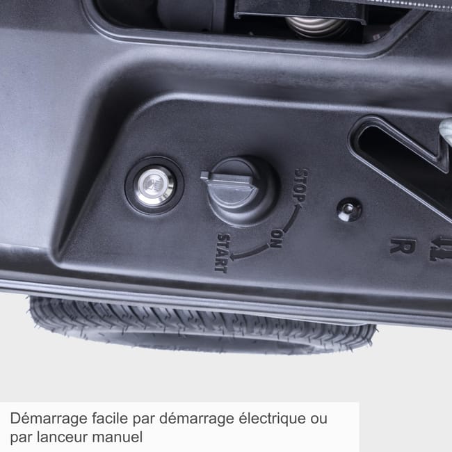 • Grande largeur de tonte de 61 cm • Puissant moteur à 4 temps de 4,4 kW / 6,0 CV • Convient pour pelouse jusqu’à 2600 m² • Réglage de hauteur centralisé ajustable à 5 positions (35 à 75 mm) • Système de démarrage hybride - facile par démarrage électrique ou par lanceur manuel • 4 vitesses en marche avant 1,5 / 2,0 / 4,0 / 6,0 km/h et 1 vitesse en marche arrière 2,3 km/h • Les phares à LED permettent de travailler au crépuscule ou par mauvaises conditions de luminosité • Nettoyage facile et rapide grâce au raccord rapide pour tuyau d‘eau • Lame de tonte robuste en acier • Grand bac de ramassage 150 L • Lame de tondeuse débrayable et embrayble manuellement • Grande roues gonflables pour une bonne tenue au sol • Inclinaison max. de la pente 10°