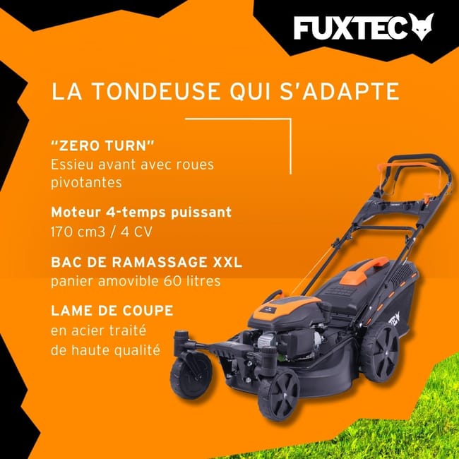 Tondeuse thermique autotractée 51cm 170cm3 - FUXTEC FX-RM5170agile - Roues Pivotantes 60L Easy Clean Mulching