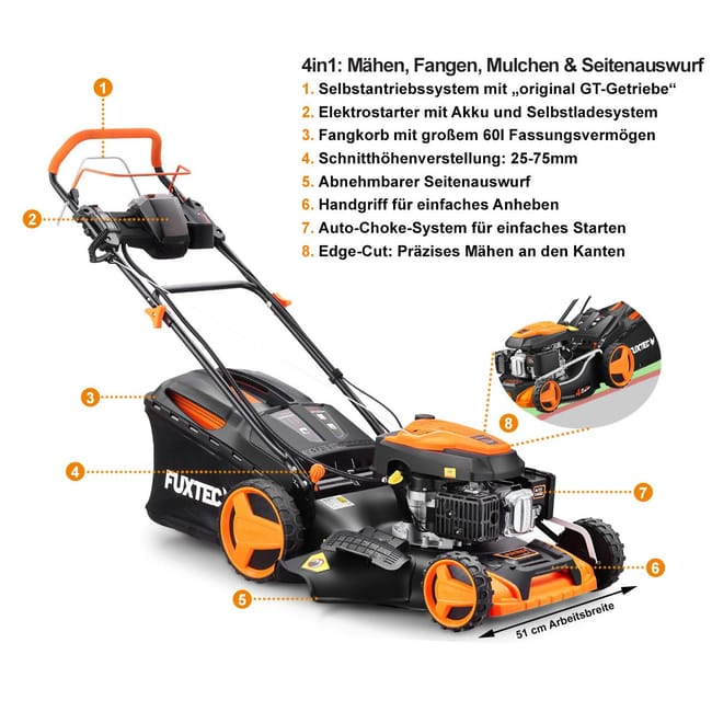 Tondeuse démarrage électrique E-Start FUXTEC FX-RM5196eS avec zipgo®