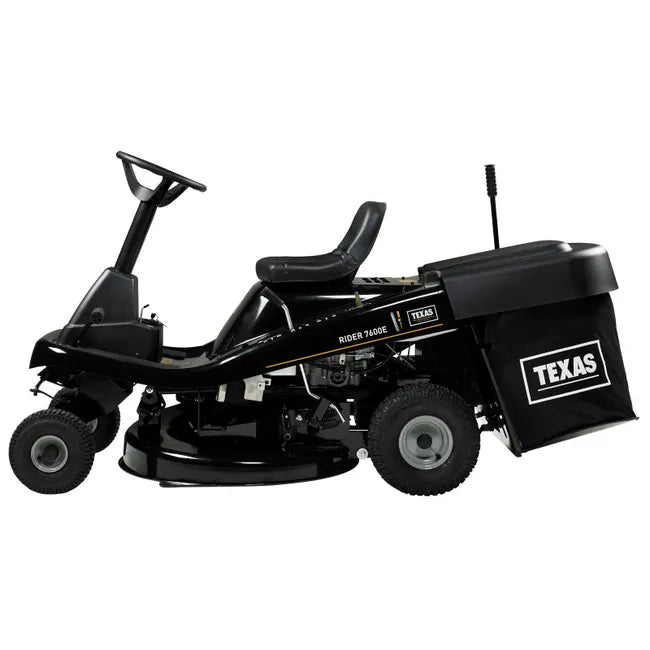 Tracteur autoportée Texas Cavalier 7600E 3i1 Marque Texas equipmentPilote compact et puissant avec un collecteur de TEXAS, offrant trois options de tonte et un moteur robuste pour gérer facilement même les grandes pelouses avec des herbes hautes. Description Le TEXAS Rider 7600E 3-en-1 est un tracteur puissant, facilitant la tonte de l'herbe dans le jardin ou sur de grandes propriétés, vous permettant de naviguer sans effort autour des parterres de fleurs, des arbres et bien plus encore. Elle propose trois options de tonte : utilisation du collecteur, mulching ou éjection latérale, selon vos besoins, et avec cinq vitesses avant et une marche arrière, vous trouverez toujours la bonne vitesse. Il est propulsé par un puissant moteur 4 temps de 432 cm3 avec démarrage électrique 12 V et allumage par clé, ce qui le rend extrêmement facile à démarrer. Avec une construction métallique durable, de grandes roues et un plateau de coupe en acier de 76 cm, le Rider 7600E 3-en-1 est idéal pour les pelouses entre 800 et 1 500 m² - ou simplement si vous souhaitez une machine fiable pour tondre votre gazon. Comment il tond Avec le réglage central de la hauteur, vous pouvez choisir parmi six hauteurs de coupe comprises entre 35 mm pour une pelouse résidentielle soignée et jusqu'à 76 mm pour une herbe plus haute sur des propriétés plus grandes. Sous le solide carter de coupe en acier de 76 cm, une seule lame coupe l'herbe efficacement, quelle que soit la méthode de tonte choisie. Le Rider 7600E 3-en-1 offre trois options de coupe : collecteur, mulching et éjection latérale. Le bac de ramassage intégré de 170 L est idéal pour garder la pelouse exempte d'herbes coupées et lui donner un aspect impeccable, tout en mulchant les feuilles coupées sur la pelouse pour la fertiliser, et l'éjection latérale est particulièrement pratique pour manipuler les herbes hautes lorsque la pelouse n'est pas tondue fréquemment. Le puissant moteur délivre 8,0 kW, fournissant suffisamment de puissance pour le travail, même sur les grandes surfaces recouvertes d'herbes hautes. Cela rend le Rider 7600E 3-en-1 adapté à une tonte confortable dans les jardins ordinaires ainsi qu'à une tonte efficace de grandes parcelles. Détails pratiques Le Rider 7600E 3-en-1 est doté d'une boîte de vitesses manuelle à cinq vitesses avant, vous permettant de trouver une vitesse comprise entre 1,5 km/h et 4,6 km/h selon vos besoins, plus une marche arrière. Pour des raisons de sécurité, ce modèle ne permet pas de tondre en marche arrière et le moteur s'arrêtera si une tentative est faite. Les roues avant mesurent 10' et les roues arrière 15', toutes équipées de pneus en caoutchouc gonflés à l'air avec des bandes de roulement profondes qui assurent une excellente traction tandis que leur grande largeur minimise l'impact sur la pelouse. Utilisabilité à long terme La Rider 7600E 3-en-1 est une tondeuse durable conçue pour de nombreuses années d'utilisation, et elle peut également être utilisée pour d'autres tâches (lorsque le collecteur n'est pas fixé). L'attelage inclus vous permet de tirer un petit chariot benne (charge maximale 50 kg), un épandeur attaché ou un ramasseur. Vous bénéficierez également d'un siège conducteur confortable, assurant un bon confort lors des longues séances de tonte, avec tous les leviers de commande à portée de main lorsque vous êtes assis. Le réservoir de carburant de 4,2 L permet une tonte prolongée sans avoir besoin de faire le plein. De plus, le couvercle sous le siège peut être soulevé pour un accès facile au moteur pour les vidanges d'huile et autres tâches d'entretien. Veuillez noter Le chargeur n'est PAS inclus mais peut être acheté séparément. La machine est livrée partiellement remplie d'huile moteur, mais elle doit être complétée jusqu'au niveau maximum de 1,2 L. L'huile 4 temps supplémentaire n'est PAS incluse et doit être achetée séparément. Le cavalier est recommandé pour les pelouses relativement plates sans pentes raides. Le pilote est livré dans un cadre de protection en bois, qui doit être détaché et la partie supérieure soulevée au-dessus de la machine. En raison du poids et de la taille du cadre, nous recommandons de le confier à deux personnes. TEXAS recommande Tondeuse à gazon grossier pour végétation sauvage Votre espace vert est devenu un peu envahi par la végétation ? Une tondeuse à gazon rugueux de TEXAS peut la couper afin que vous puissiez utiliser le cavalier. Coupe-herbe pour bordures Besoin d'atteindre des espaces restreints que le cycliste ne peut pas atteindre ? Avec un coupe-herbe TEXAS, vous pouvez donner à votre jardin la touche finale parfaite. Caractéristiques Démarreur : Électrique Essence/diesel : Essence Marches avant : 5 Hauteur de coupe : 30-76mm Paillage : Oui Nombre de réglages élevés : 6 postes Tupe d'expédition : Oui Nombre de couteaux : 1 pièce. Matériau du bouclier : Acier Poids : 160 kg Largeur de la machine : 92cm Longueur de la machine : 171cm Hauteur de la machine : 77cm Type de moteur : 4